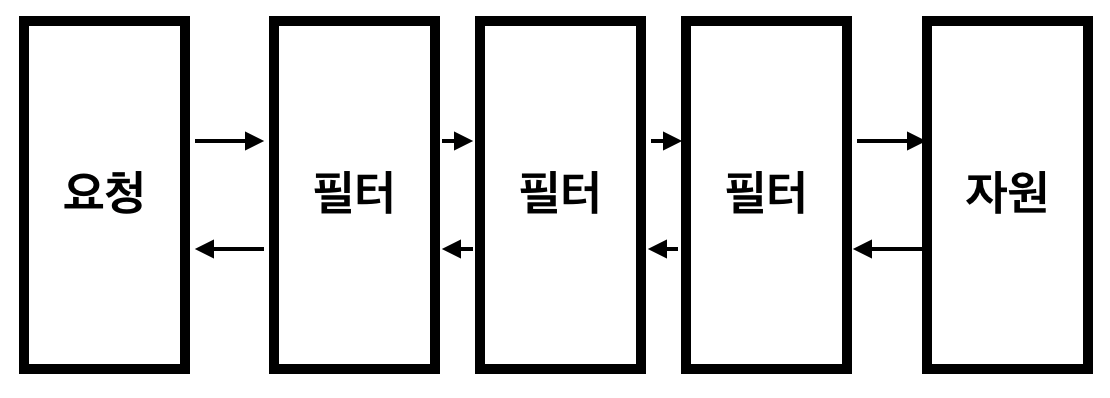 또한 Filter는 FilterChain(필터 체인)을 통해 여러 필터가 연쇄적으로 동작하게 할 수 있습니다.