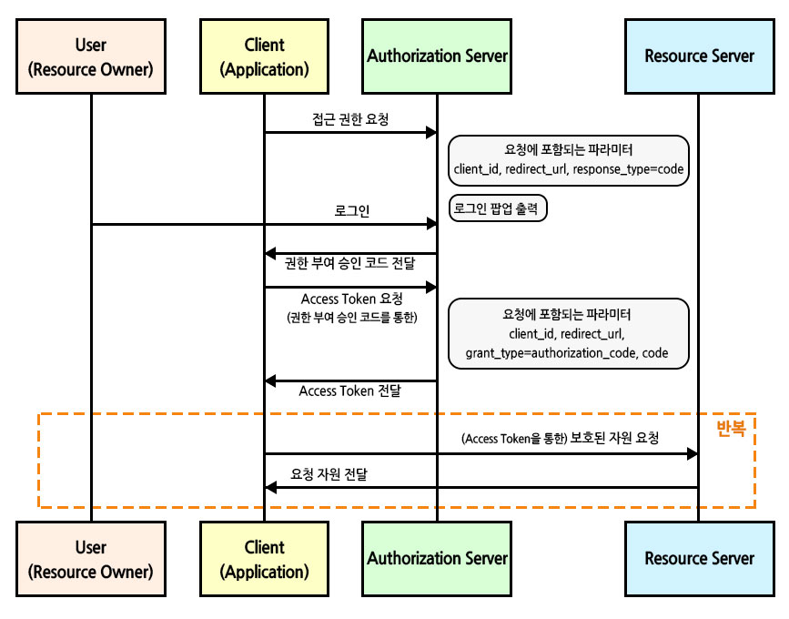 OAuth2에서 가장 기본이 되는 방식이며, 간편 로그인 기능에서 사용되는 방식입니다.