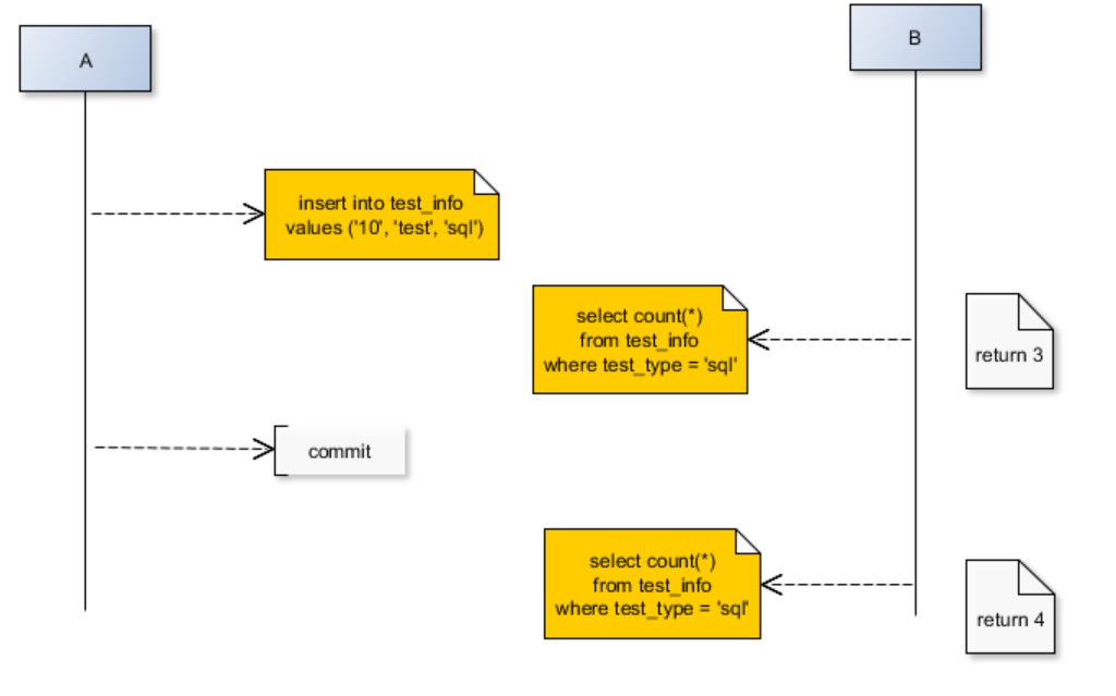 두 번째 트랜잭션의 SELECT문이 두 트랜잭션에서 사용하는 데이터를 변경하기 때문에 첫 번째 트랜잭션의 두 INSERT문에서 서로 다른 결과를 반환할 수 있습니다.