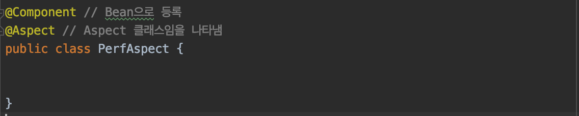 AOP 클래스 상단에 @Aspect , @Component 어노테이션을 선언합니다.