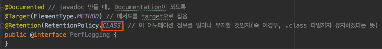 어노테이션 파일을 만들고, @Retention 어노테이션을 CLASS타입으로 설정해준다.