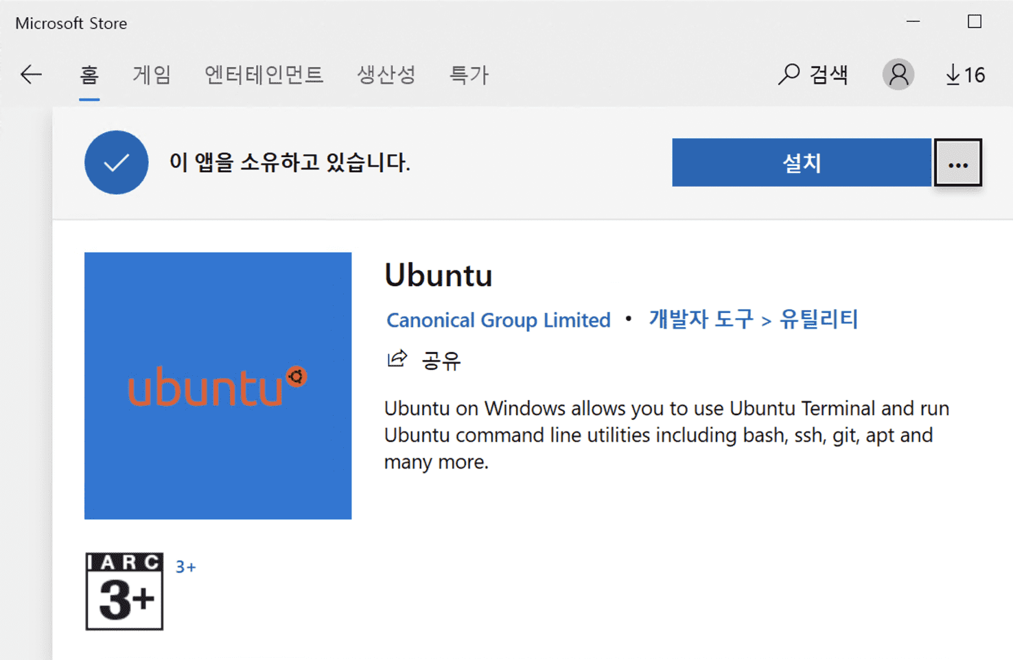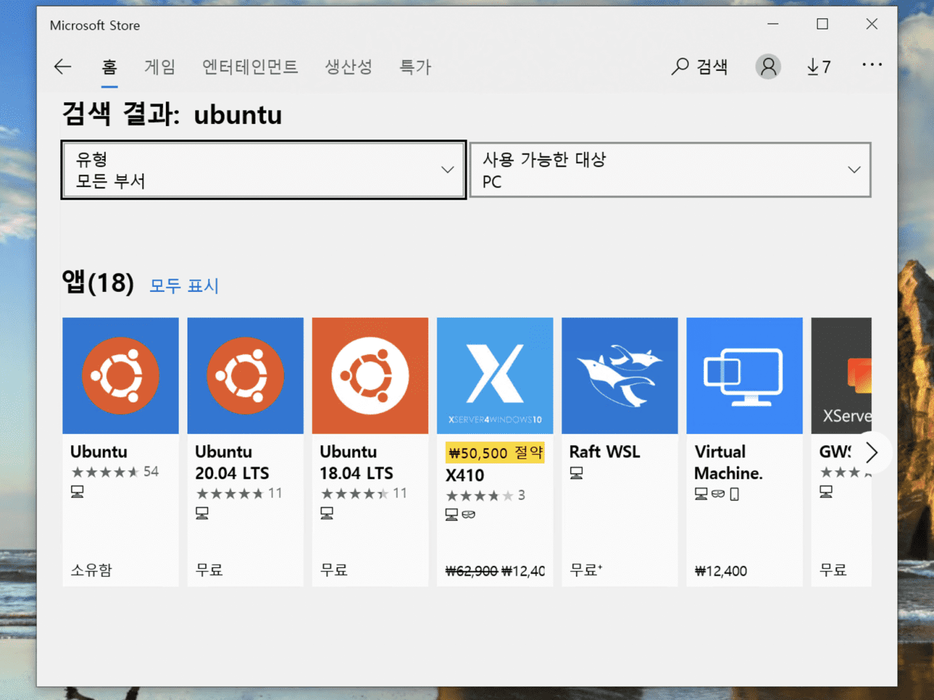 마이크로소프트 스토어에서 우분투 리눅스 설치