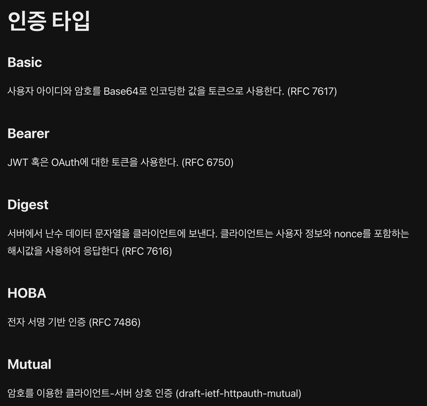 본 글은 MDN - HTTP 인증, Veloport님의 게시글을 참고하여 작성되었습니다. 자세하게 알고싶으신 분은 해당 링크를 참고해주세요.토큰 기반 인증인증 타입마치며토큰 기반 인증은 쿠키나 세션을 이