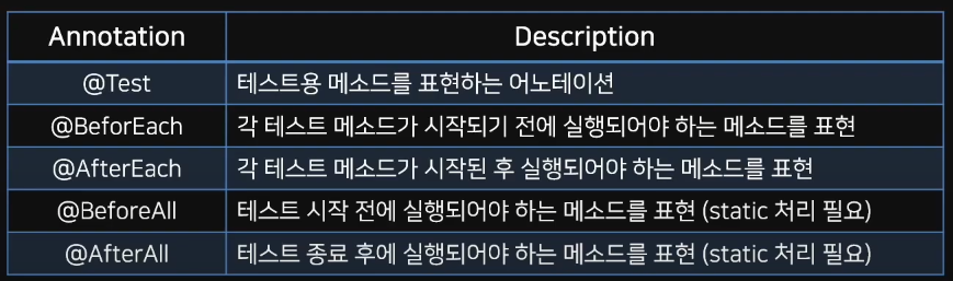 - Junit : 자바 단위 테스트를 위한 테스팅 프레임워크