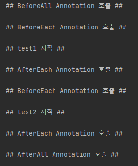 System.out.println("## BeforeAll Annotation 호출 ##");