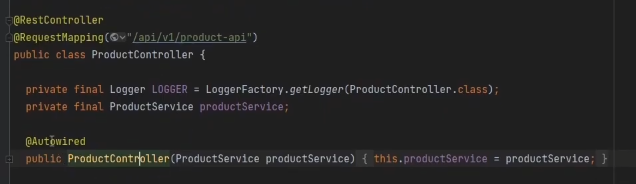 ProductController 코드를 보면, ProductService를 Autowired해서 주입받고있다.