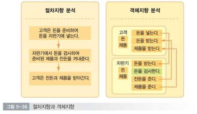 하지만 우리가 데이터를 통해 어떤 행동을 할 땐, 목적이 되는 대상이나 주체가 정해져 있는 경우가 많다. 실제로 우리는 보통 말할 때도 '고객이 돈을 ~' 또는 "자판기가 돈을~"과 같은 표현을 더 많이 사용하고, 익숙하다. 이 경우 행위와 데이터를 묶어 유기적으로 표현하는 객체 지향과 닮았다.