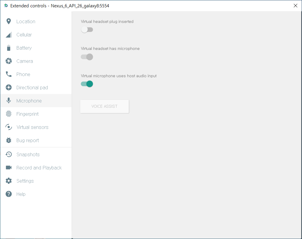 avd 환경세팅에들어가 host 마이크로폰을 사용하도록 설정을 바꿔주면 된다