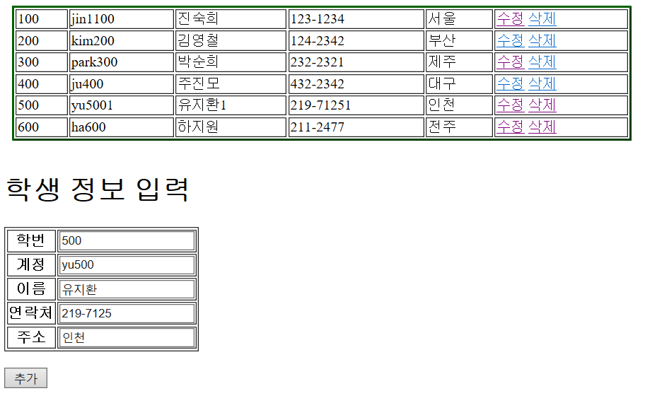 - 첫번째 시간에 JSP 페이지를 만들었을때 서버연결 소스코드를 각페이지마다 적고