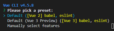 >vue create front-end