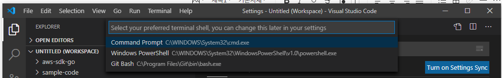 1. select Default Shell을 통해서 cmd로 변경