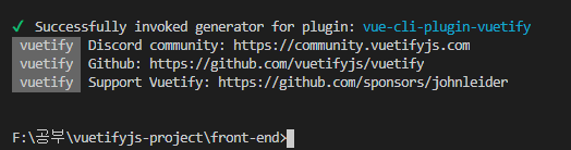 npm run serve 로실행 시 화면이 vue.js에서 vuetify 로 바뀌어야 한다.