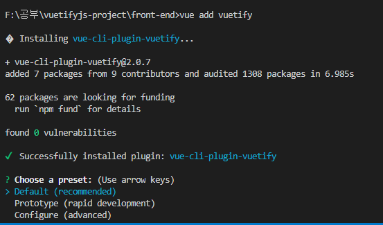 자세한 설명은 vuetifyjs.com/en/getting-started/installation/#vue-ui-install 여기를 참고 하자