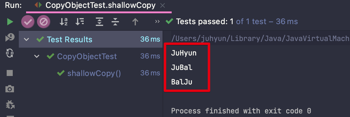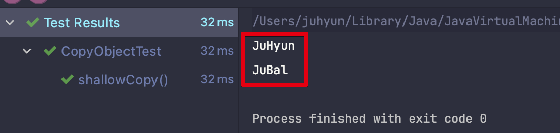 복사 생성자와 복사 팩터리를 통해 객체를 복사하는 과정도 깊은 복사임을 알 수 있습니다.