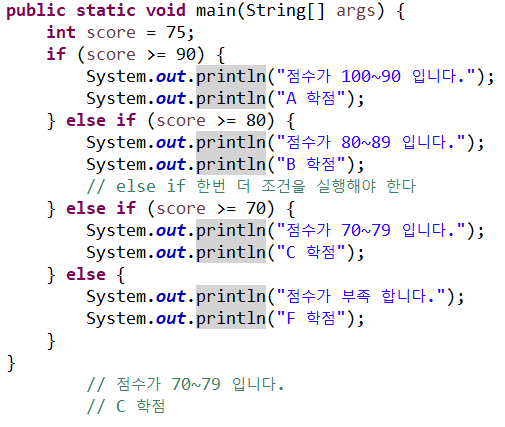 -복수의 조건식 두어 조건식을 만족하는 블록만 실행한다.