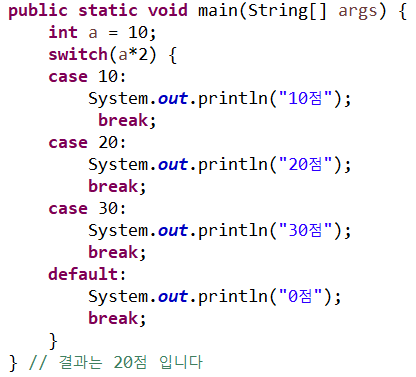 변수나 연산식의 값에 따라 실행문 선택할 때 사용한다.