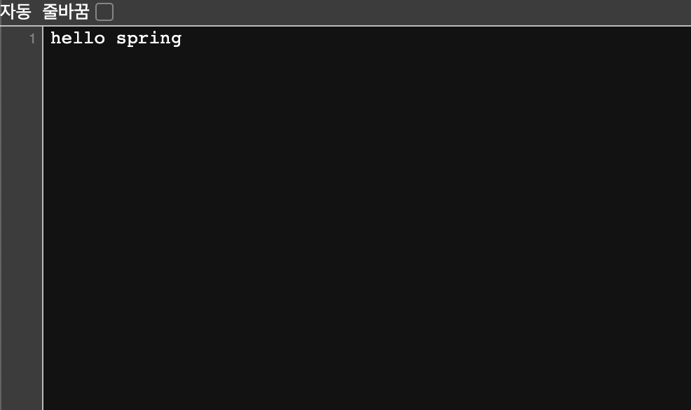 - 확인하기 위해, http://localhost:8080/hello-string?name=spring 으로 접속하면, 아래와 같은 화면이 보이고, 페이지 소스 보기 하면, html code 없이 Data만 존재하는 것을 확인할 수 있다.