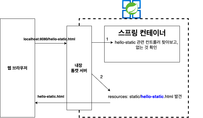 - /static 폴더에서 정적 컨텐츠를 찾아서 제공한다.