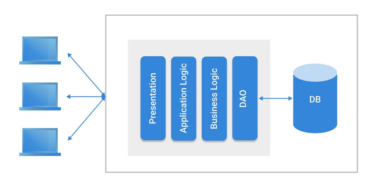 모놀리식 아키텍처는 마이크로서비스(MSA) 아키텍처에 반대되는 개념으로, 애플리케이션의 모든 구성 요소가 한 프로젝트에 통합되어 있는 형태를 말한다.
